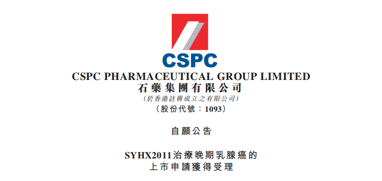 石藥集團SYHX2011治療晚期乳腺癌的上市申請獲得受理