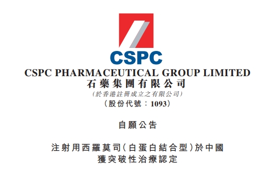 石藥集團注射用西羅莫司(白蛋白結合型)于中國獲突破性治療認定