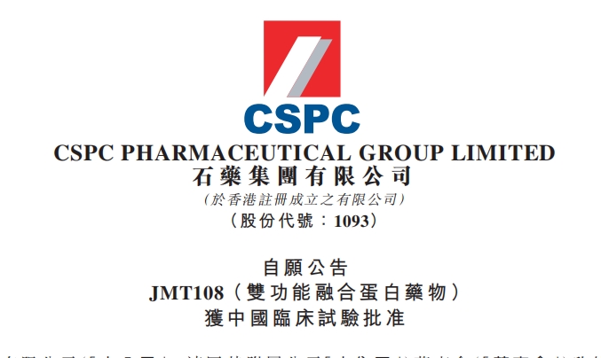 3月5日,石藥集團(1093.HK)宣布,本集團開發的I類新藥雙功能融合蛋白藥物 JMT108(下稱:該產品)已獲中華人民共和國國家藥品監督管理局批準,可在中國開展臨床試驗。