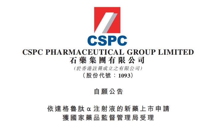 石藥集團(tuán)依達(dá)格魯肽α注射液的新藥上市申請(qǐng)獲國(guó)家藥品監(jiān)督管理局受理