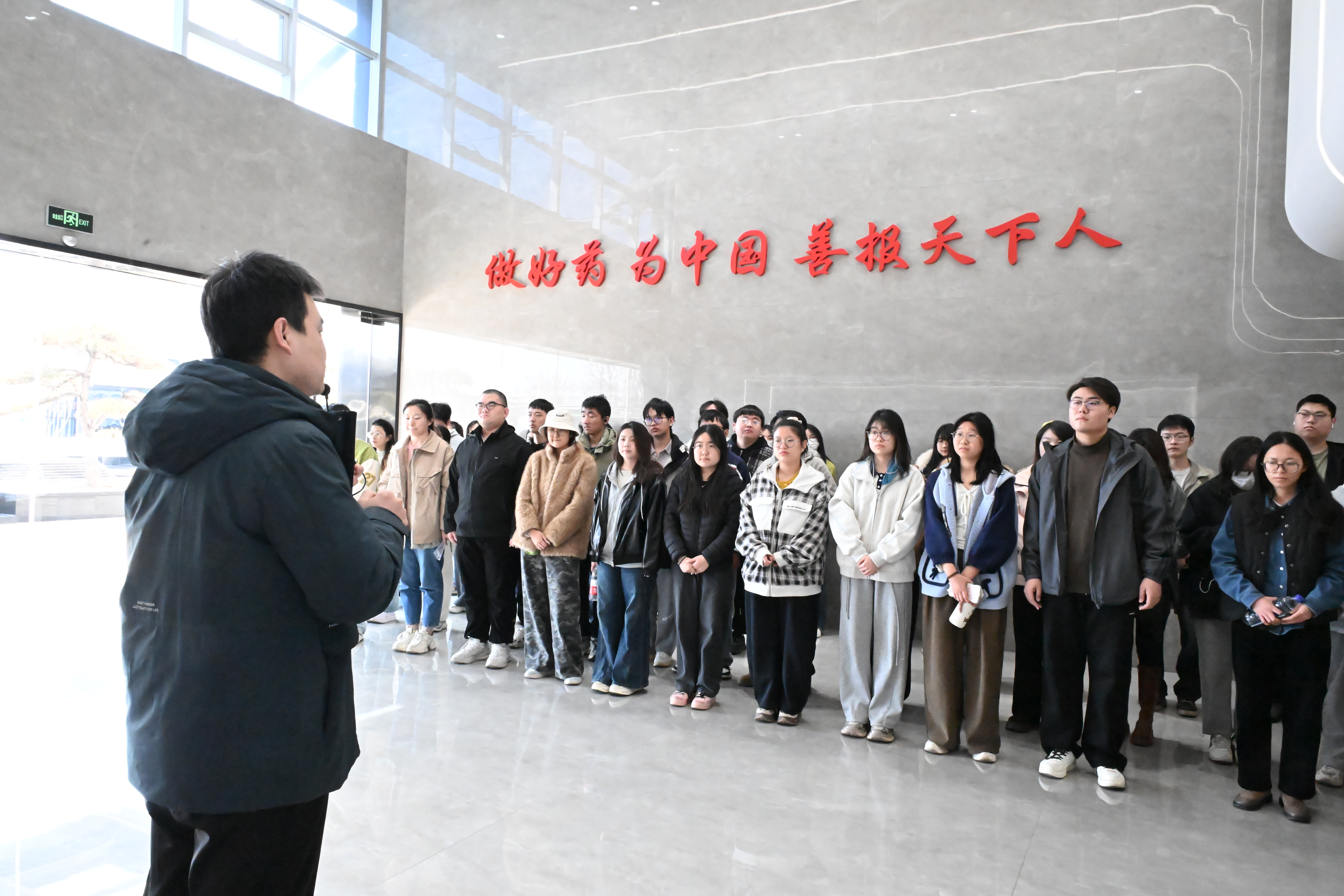 活動伊始,學子們在講解員的帶領下,走進了石藥集團第一制造中心展廳。從創業初期的篳路藍縷,到如今躋身中國醫藥工業百強前列的輝煌歷程,從一粒藥的研發誕生,到國際化布局的宏偉藍圖……同學們認真聆聽著,眼神中充滿了對未來的憧憬。同時現就職于第一制造中心的學校校友,以“學姐”身份向同學們分享了自己從校園到職場的轉變歷程,講述在石藥集團的成長與收獲,引發了在場學生的強烈共鳴。
